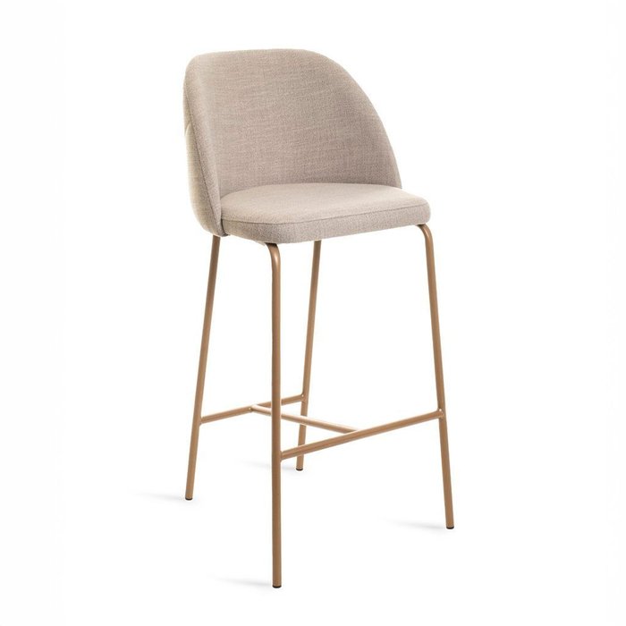 Banqueta Begonia Fixa Dourada Linho Cinza Mescla