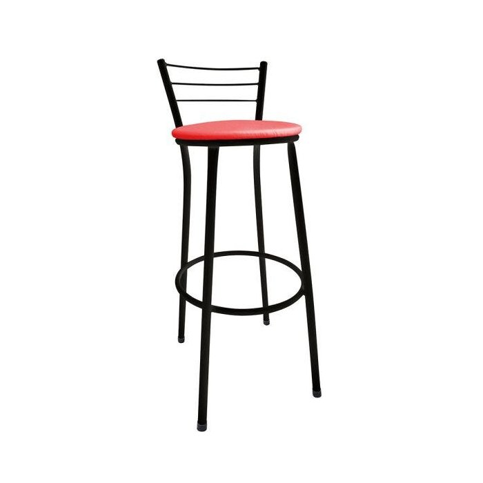 Banqueta Bistrô Aço Pintura Epóxi Preta Assento Vermelho Preto