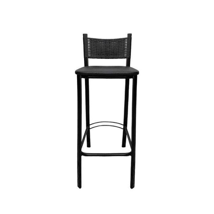 Sua estrutura em aço carbono é leve e extremamente durável e conta com encosto em junco sintético.