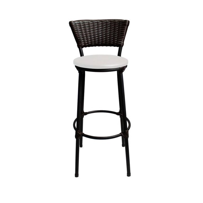Banqueta Bistro Cuba Aço Preto Junco Sintético Marrom Assento Branco