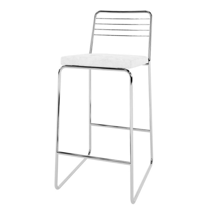 Banqueta com Tubos Redondo de Aço Carbono, Encosto Aramado e Assento Estofado Revestido por PU Tube Pozza Móveis Cromado/Branco