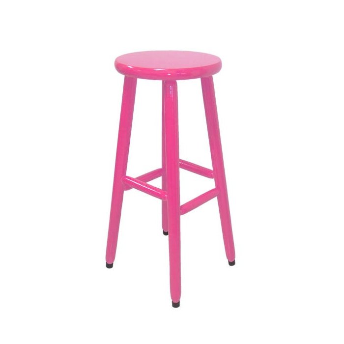 Banqueta Country Banco Alto Liso de Madeira - Rosa
