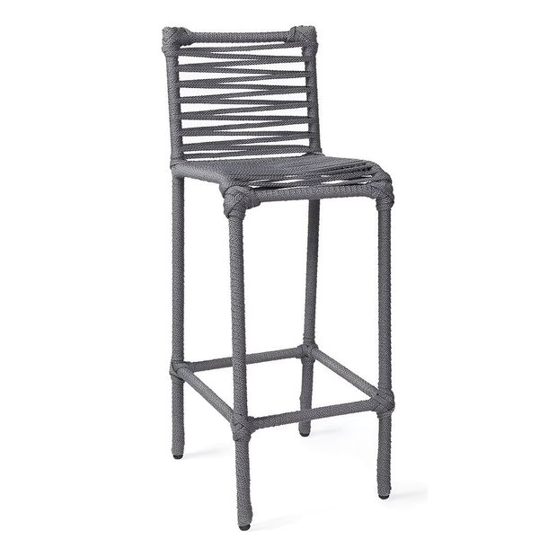 Feita com estrutura em ferro e acabamento em pintura eletrostática/epóxi, essa banqueta é altamente durável e resistente à corrosão. O assento e encosto são revestidos com corda náutica trançada, garantindo um toque moderno e aconchegante.