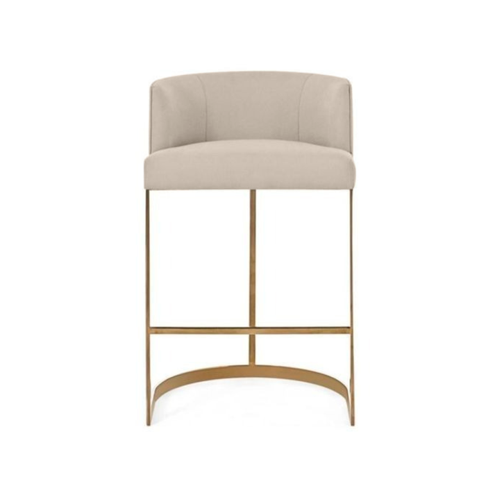 Banqueta Decorativa Alta Base Metal Cromo Dourado em Linho - Bege Linho