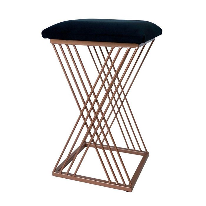 Banqueta Design X Rose Gold Estofado Preto Preto