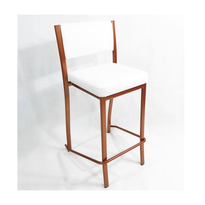 Descrição do Produto: A Banqueta 1632, na altura média é perfeita para salas de jantar, cozinhas, bares, restaurantes e hotéis. Adequada para bancadas de aproximadamente 90cm à 95cm de altura. Sua estrutura é em aço revestido com pintura eletrostática epóxi na cor cobre e tubo 16/30. O aço é um material resistente e durável, de fácil limpeza e armazenamento. A banqueta é compacta e de grande utilidade. Ela possui assento (espessura 6cm) e encosto na cor branca revestido em material sintético. Seu diferencial é que a banqueta 1632 é empilhável se adaptando à vários tipos de ambientes.