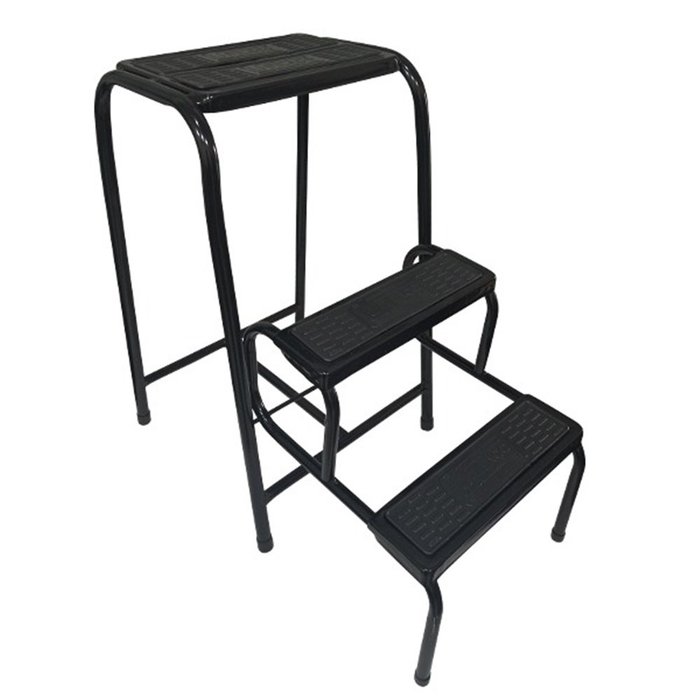 Banqueta Escada Útil Forte Dobrável Segura 3 Degraus Aço Carbono Preto Preto