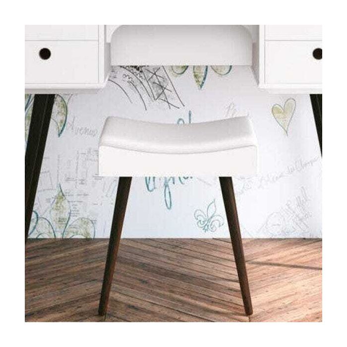 Banqueta com assento almofadado e pés em madeira maciça. Ideal para ser usado no quarto, com penteadeiras. Design retrô e um ótimo apoio na hora da troca de roupas e sapatos. Produto 100% MDF e pés em madeira Pinus.