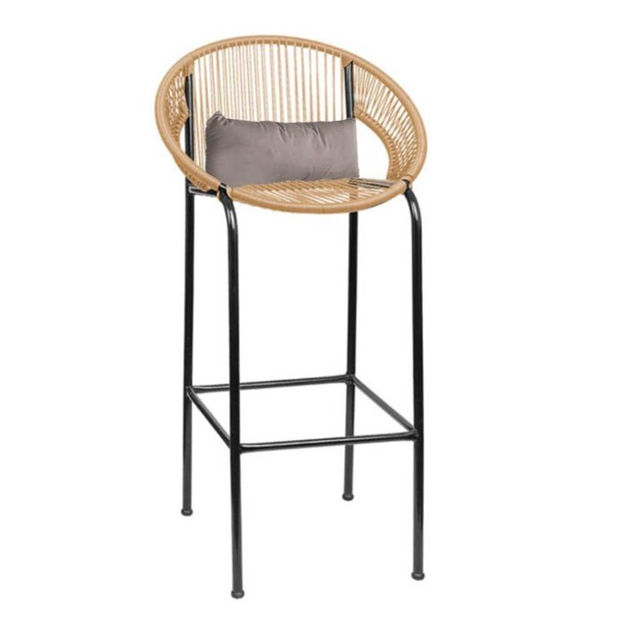 Banqueta Alta Com Encosto Acapulco Lux Fibra Sintética Creme E Almofada Corino Bege - Ahazzo Móveis