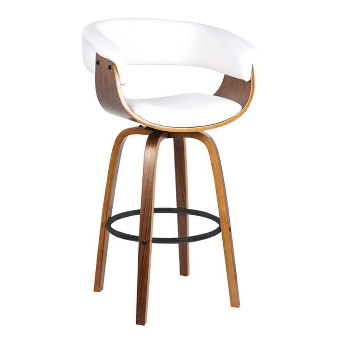 Banqueta Giratória Betim Branco Base em Madeira Drossi