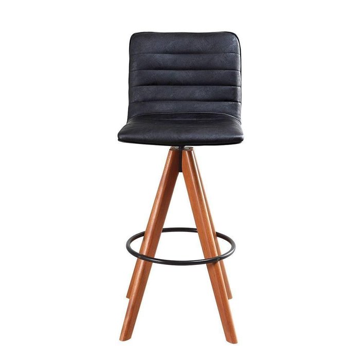 Banqueta Giratória com Encosto Estofado e Base em Madeira Castanho – Lucy Exclusiva Courino Preto
