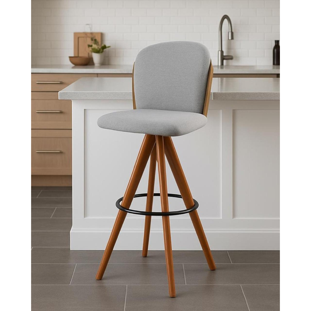 Banqueta Ayala Giratória com Encosto Estofado e Base em Madeira Maciça – Exclusiva