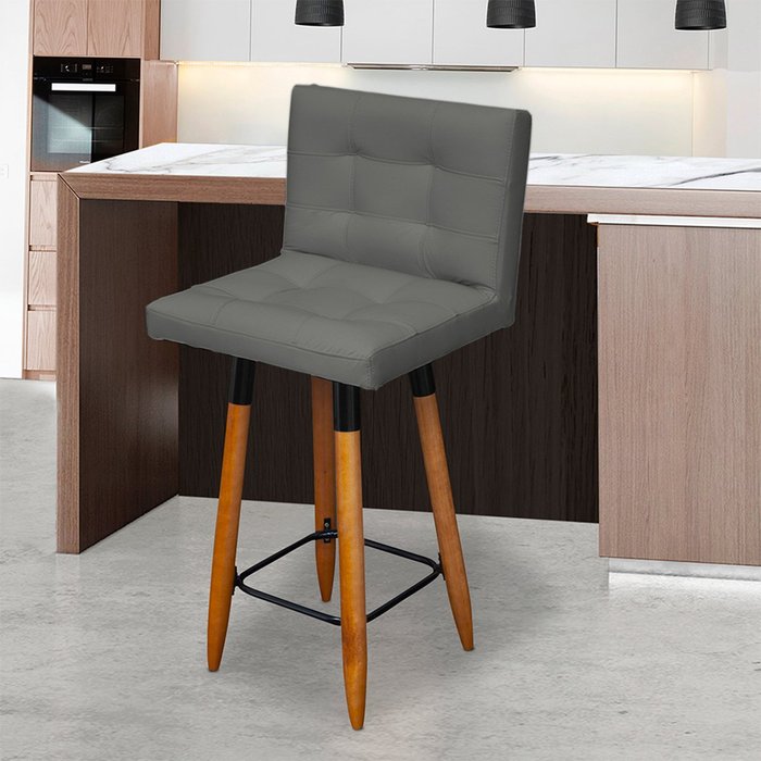 Banqueta Grace Para Cozinha Gourmet Ou Balcão Área Gourmet Pés Palito Corino Cinza