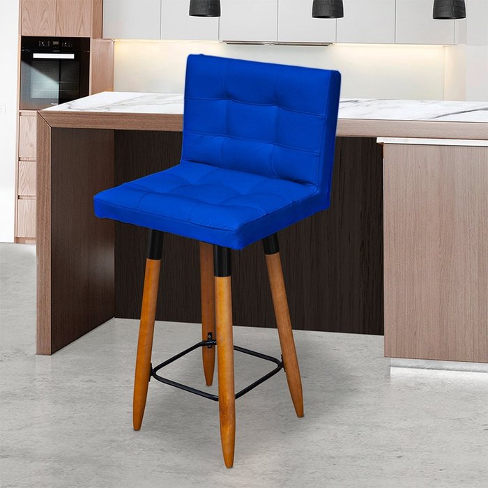 Banqueta Grace Para Cozinha Gourmet Ou Balcão Área Gourmet Pés Palito Corino Azul Royal