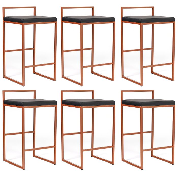 Banqueta Industrial Aço Cromada Bronze – Gourmet, Varanda, Living – Banqueta Moema Kit 6