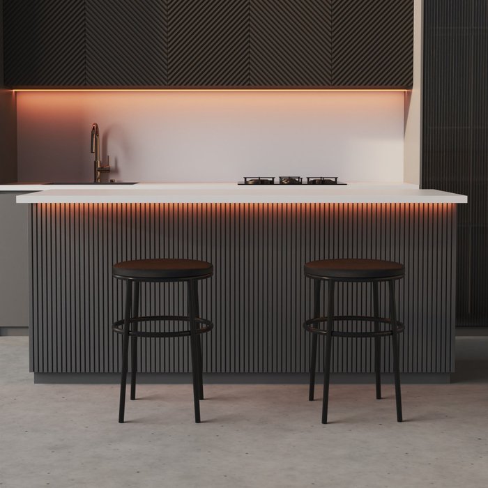 Banqueta Itália Redonda Estofada 65cm Aço Preto e Corino Impermeável - para Cozinha e Bar