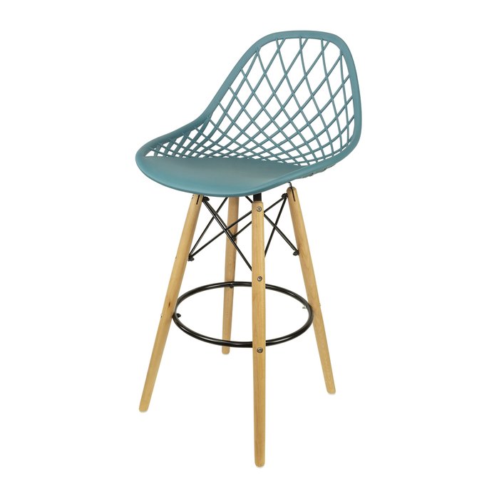 Banqueta Kaila Concha PP Base Madeira - Azul petróleo