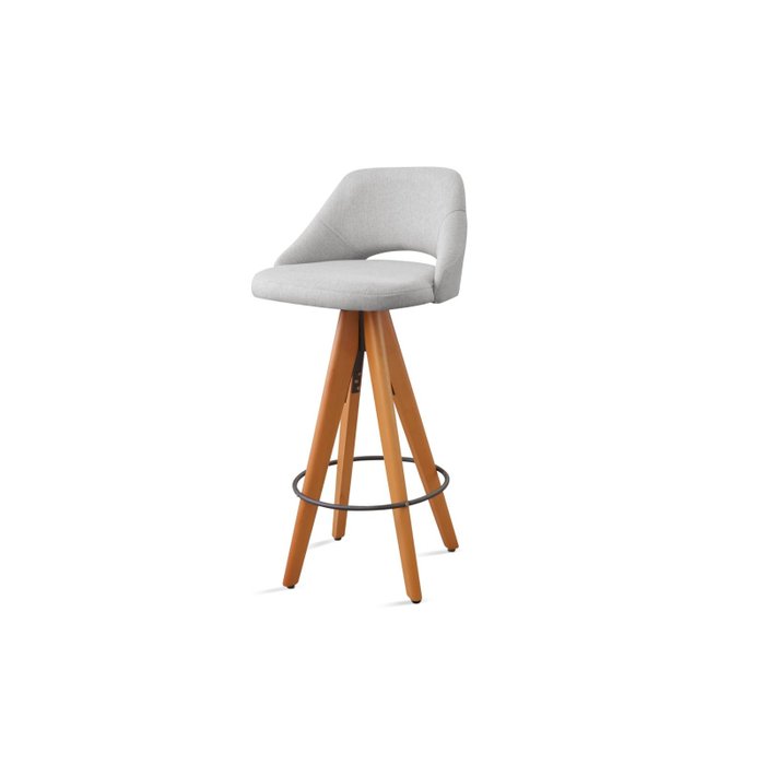 Banqueta Madeira Giratória Estofada com Encosto Nicole Cinza