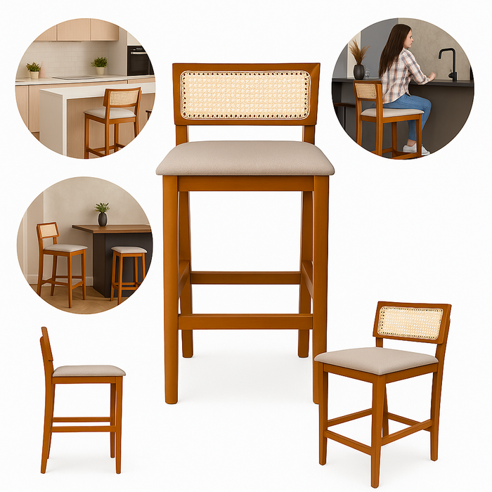A Banqueta em Madeira Maciça com Assento em Linho e Encosto em Tela Sextavada é a escolha ideal para quem valoriza conforto, qualidade e design.