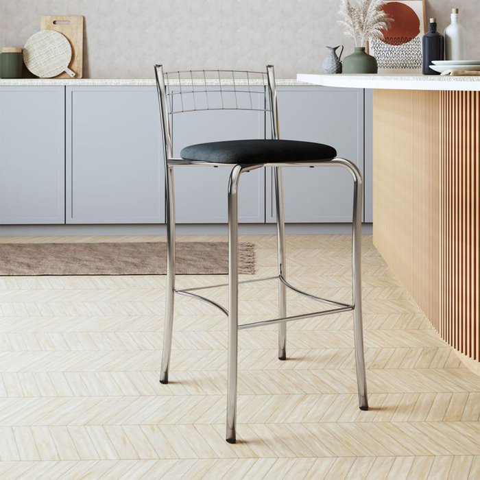 Banqueta Média 64cm de altura do assento e encosto em aço PB02 Pozza