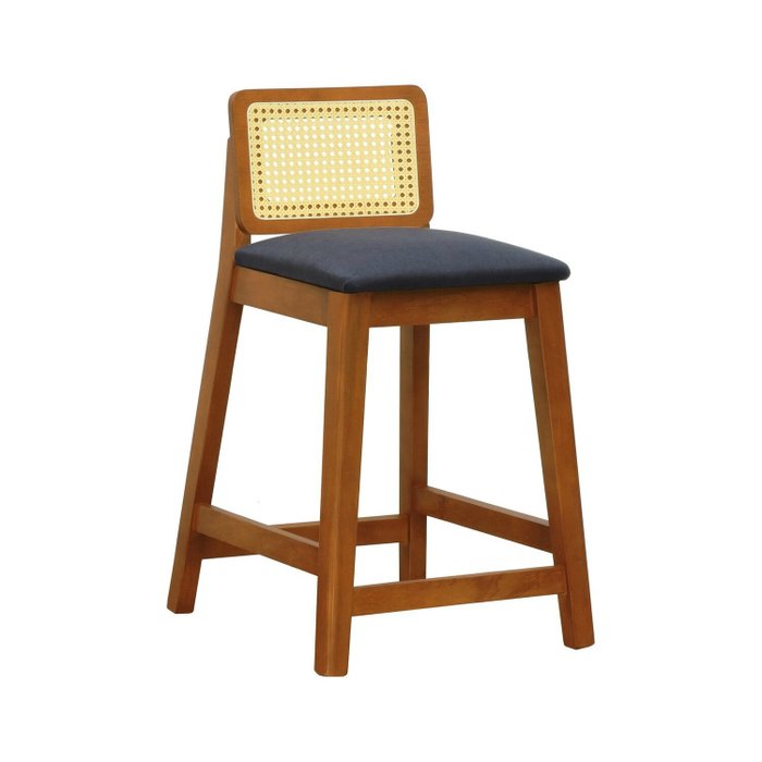 Banqueta Média Gabi Madeira Maciça Encosto Telinha Natural Assento Estofado Linho Textura Amêndoa/Preto