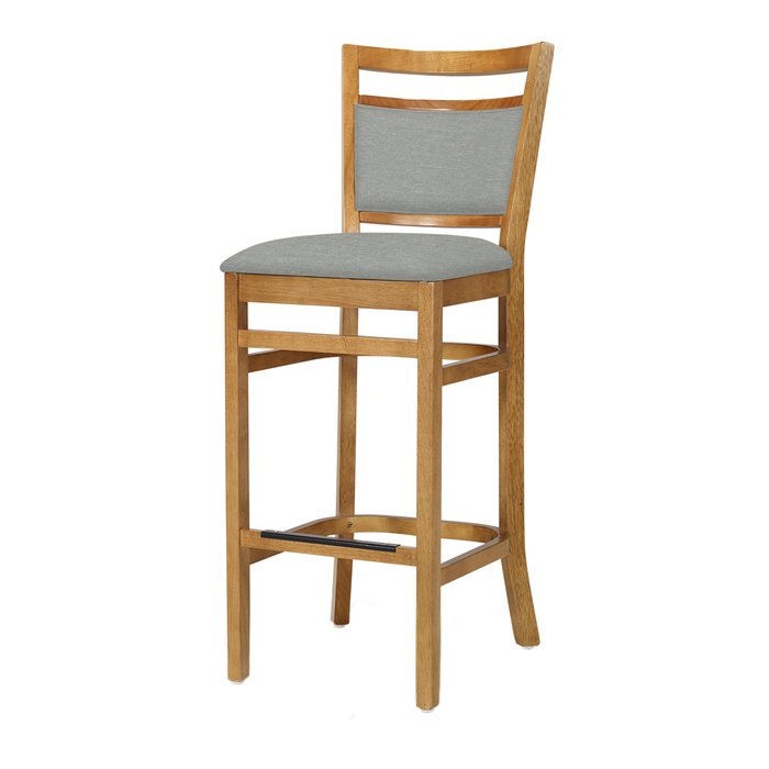Banqueta Montreal Madeira Maciça Assento e Encosto Estofado Mel Cinza Escuro