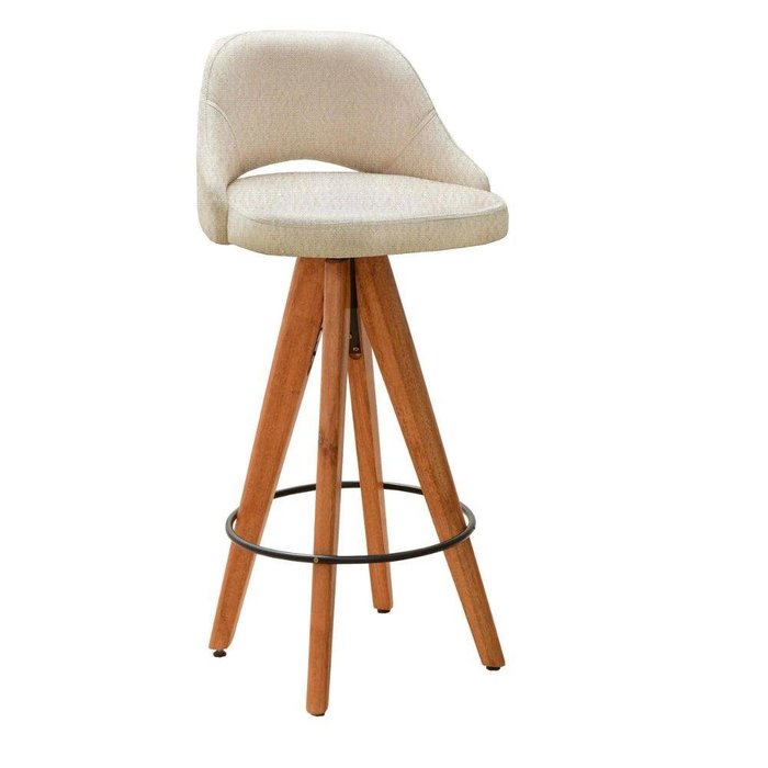 Banqueta Nicole Linho Bege Base Giratória Madeira