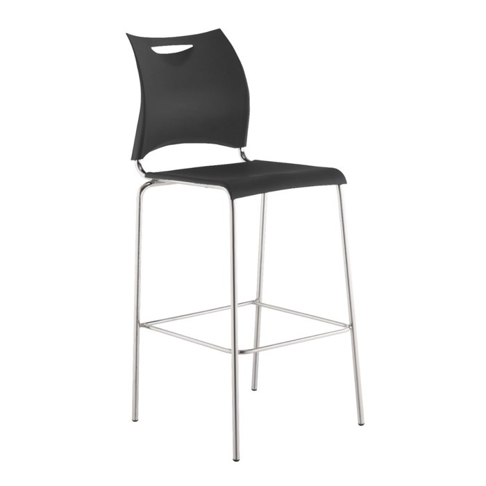 Banqueta One Alta Cromada com Assento e Encosto em Polipropileno Preto Roal