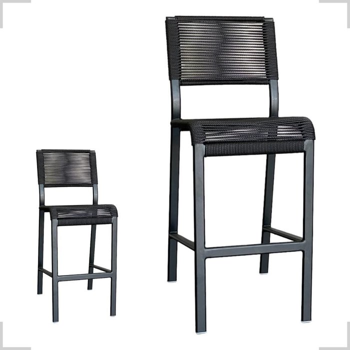 O encosto e assento é feito em corda sintética trançadas artesanalmente.