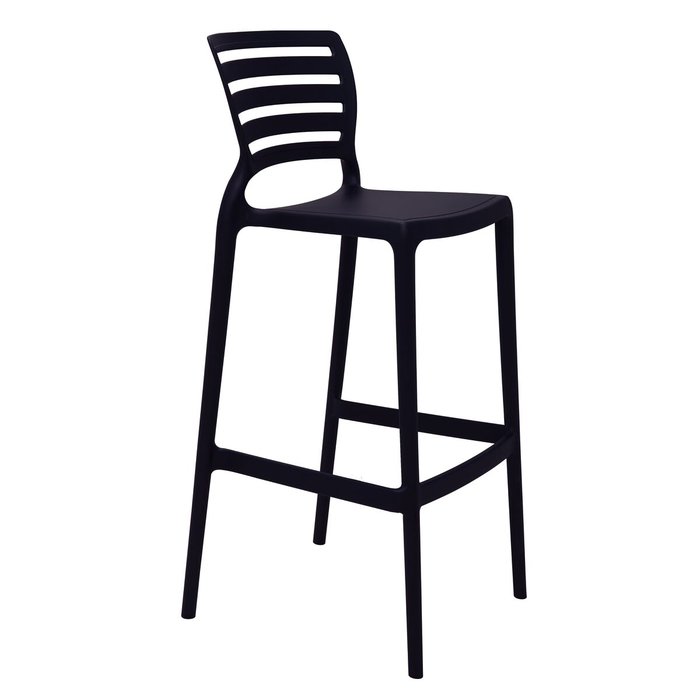 Banqueta Alta para Bar Tramontina Sofia Preta, fabricada em polipropileno de alta resistência e fibra de vidro injetado. Design moderno e empilhável, suportando até 8 peças, perfeita para otimizar espaços. Com capacidade para até 182 kg, suas dimensões são 45x50x104,5 cm, com altura de 76 cm até o assento. Ideal para bares e ambientes descontraídos.