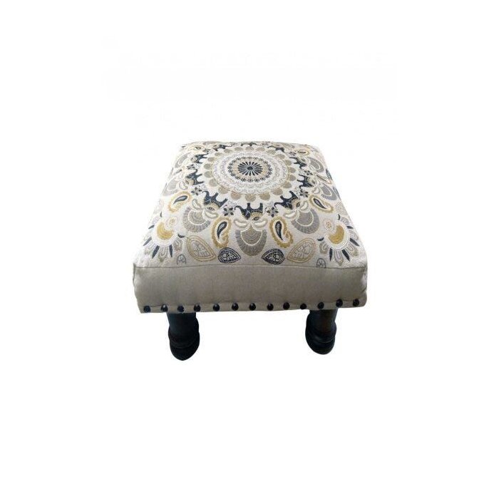 Banqueta Pashmina Madeira Estofada C Bordado Branco Besha