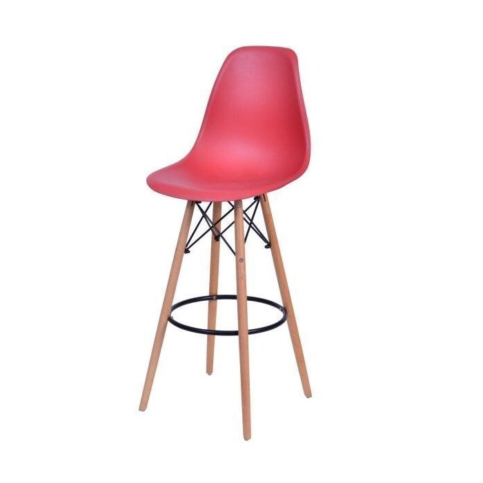 Banqueta Polipropileno Base Madeira Eiffel Branca
