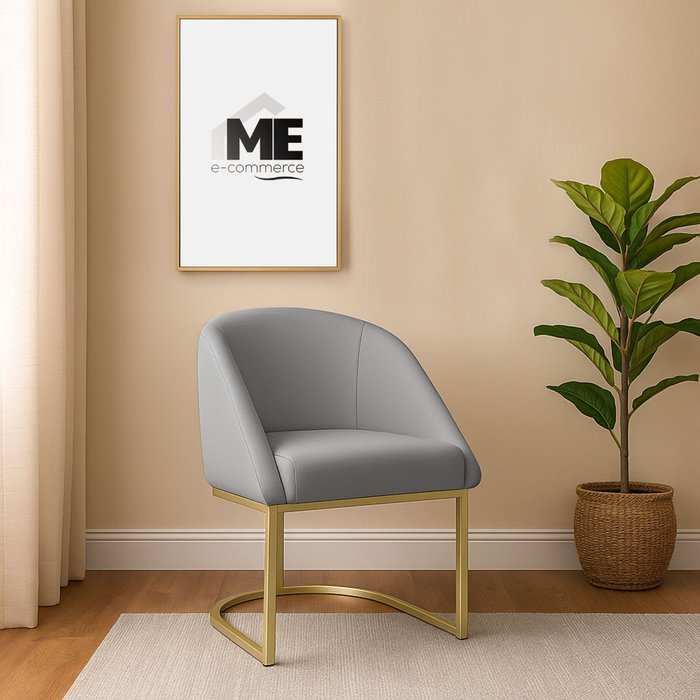 Com um design acolhedor e sofisticado, ela combina a leveza do estofado com o brilho elegante de sua base dourada. Seu encosto curvo abraça o corpo com suavidade, convidando ao relaxamento, ao cuidado pessoal e aos pequenos prazeres da rotina.