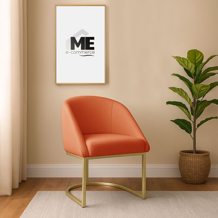 Banqueta Poltrona Lua Penteadeira e Salão com Base Metálica:terra Cota TERRA COTA