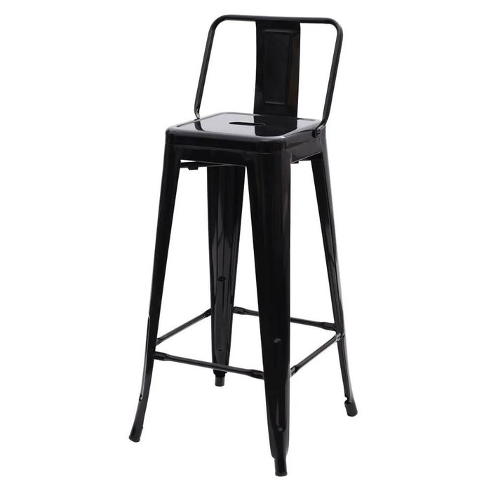 Banqueta Prizi Tolix 61cm com Encosto Preta Preto
