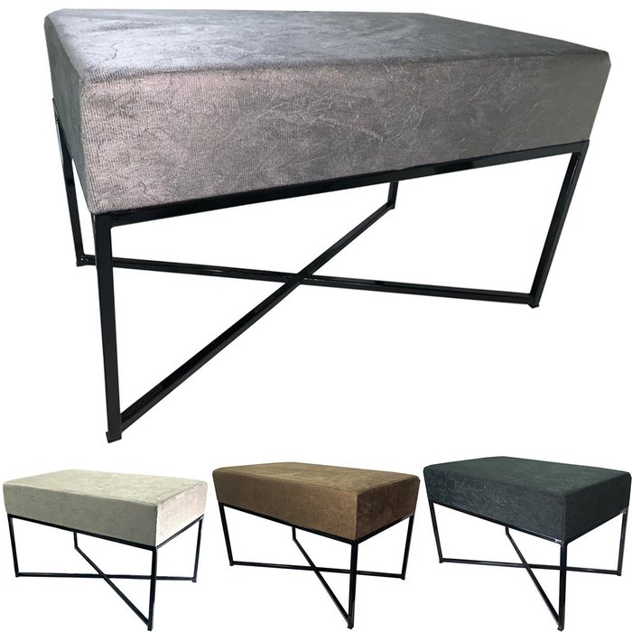 BANQUETA RETANGULAR PISA TECIDO SUEDE CINZA COM PÉ PRETO