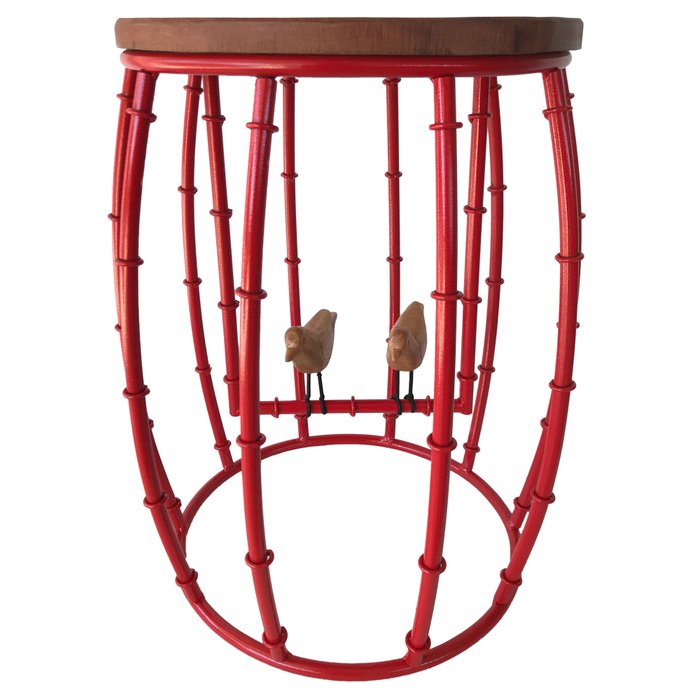 Banqueta Rústica Em Ferro Verniz Com Passarinhos Para Varandas - Vermelho Claro