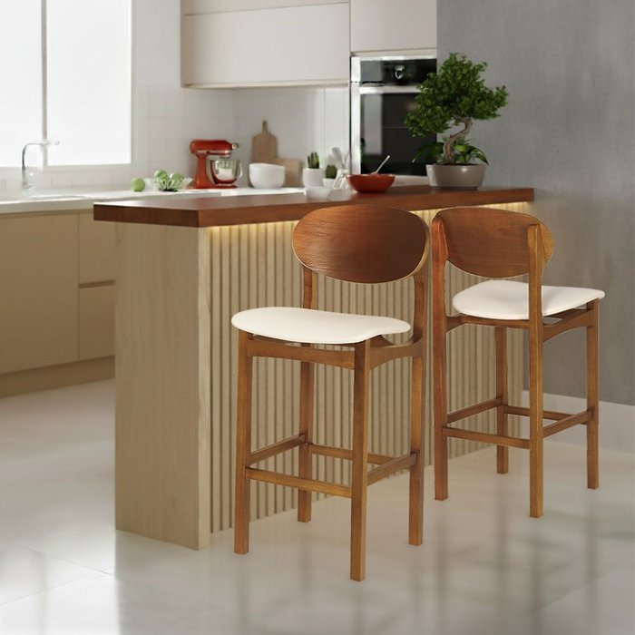 Banqueta Samba Madeira Maciça Jequitibá Nozes Conforto e Qualidade Premium Corino Bege