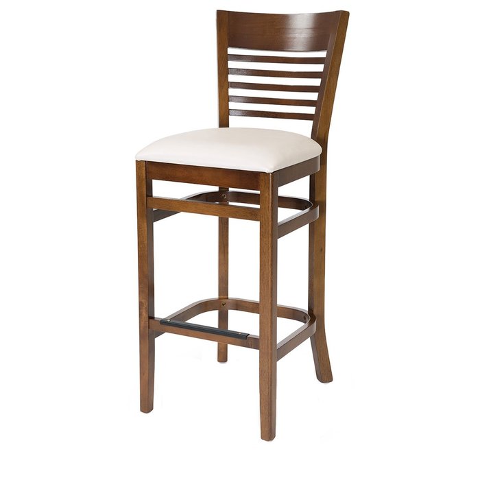 Banqueta Santiago Madeira Maciça Assento Estofado Castanho Branco