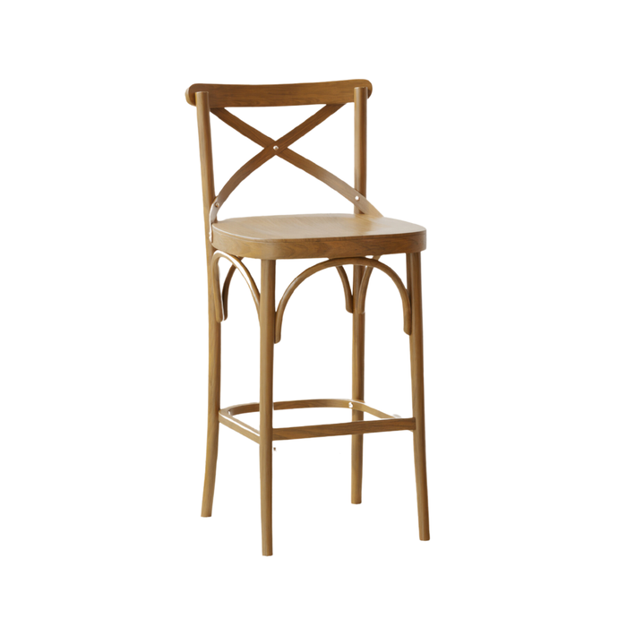 Banqueta X Encosto e Assento em Madeira Cappuccino -