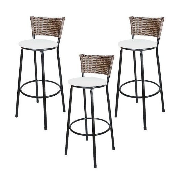 O Kit 3 Banquetas Alta Ratan Hawai é perfeito para Salas de jantar, cozinhas, bares, restaurantes, hotéis, área de lazer, cozinhas americanas entre outros. Sua estrutura em aço com pintura em epóxi, é uma combinação de resistência e durabilidade. Compacta, fácil de ser armazenada, pode ser mantida em locais tanto abertos quanto fechados. Assento com espuma D28 revestido em tecido sintético, lhe proporcionando um maior conforto ao se sentar, e conta também com protetor para os pés, para a segurança dos assoalhos.Especificações técnicasDiâmetro do Assento: 32 cmAltura do piso ao assento: 73 cmAltura Total: 95 cmAltura do encosto: 25 CMLargura da base do encosto: 34 cmEstrutura: AçoRevestimento do produto: Pintura Epóxi InoxidávelRevestimento do Assento: Espuma D28 e tecido sintéticoPeso suportado: até 150kgPeso aproximado por unidade: 3,400 kgConteúdo da Embalagem03 BanquetasGarantiaGarantia 90 dias contra defeitos de fabricação.