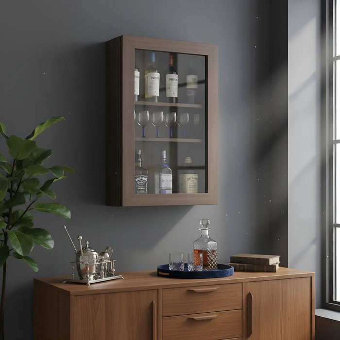 Bar Adega Peq para Vinhos e Bebidas Cristaleira Suspenso de Parede para Sala Estar ou Jantar Versati Versati