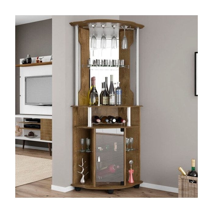 Bar Canto 1 Porta em Vidro Talismã Plus Ii Móveis Bechara Madeira Rústica