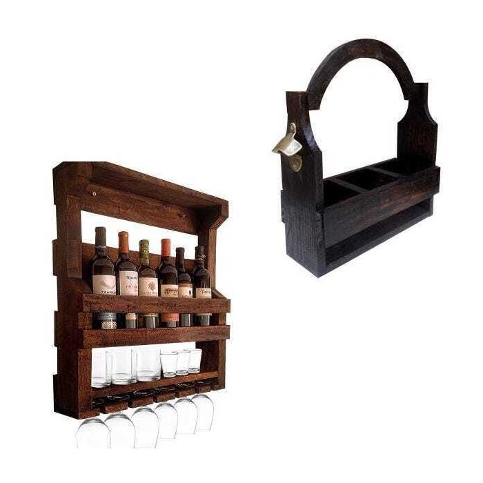 | Itens Inclusos | Bar de Parede Adega Art Madeira 6 Garrafas + Cesta Porta Cervejas Artesanais até 3 Garrafas |