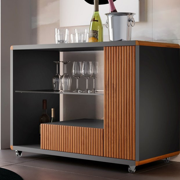 Bar Lara Moderno com Rodizio Espresso Móveis Grafite/Cinamomo