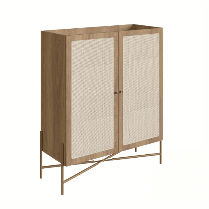 Bar Linha Oslo Mdf Cor Hanover Base Metal Dourado Acabamento Palha Sintética - a Casa Maju Hanover
