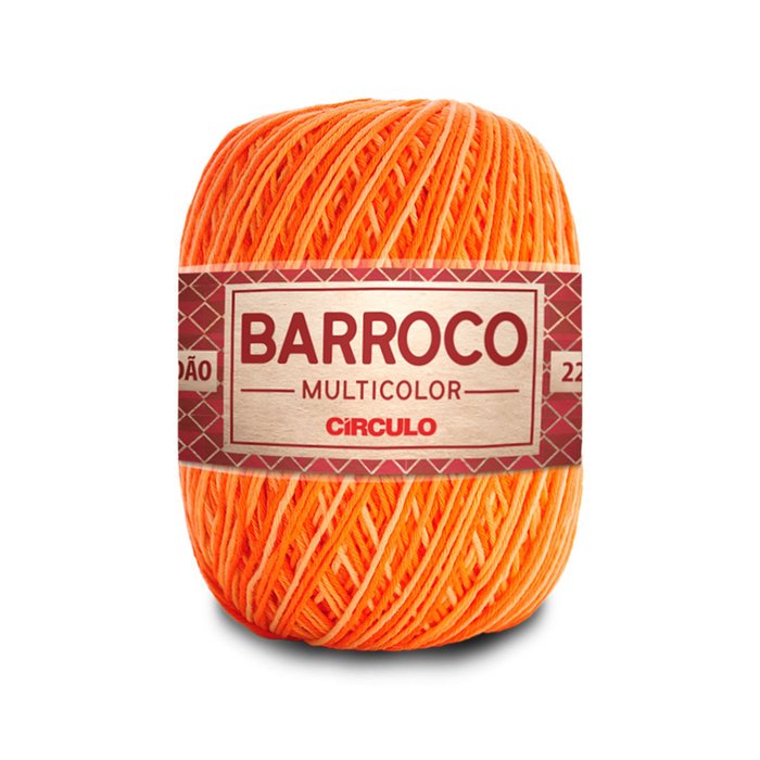 Barbante Barroco 226m Nº4/6 9059 Abóbora Multicolor. Leva por todo fio, uma mistura de cores perfeita, criando um resultado incrível nas peças confeccionadas com ele. Possui a qualidade incomparável que só um fio composto de 100% puro algodão pode oferecer, garantindo o toque macio e durabilidade. Além do rendimento e caimento perfeito, resultante da sua espessura.