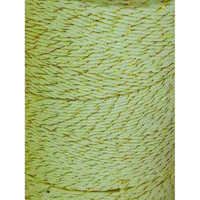 Barbante para artesanato na cor amarela com fio metalizado amarelo entrelaçado, rolo com 600m, fio 8, 1.180Tex, peso líquido 1Kg.