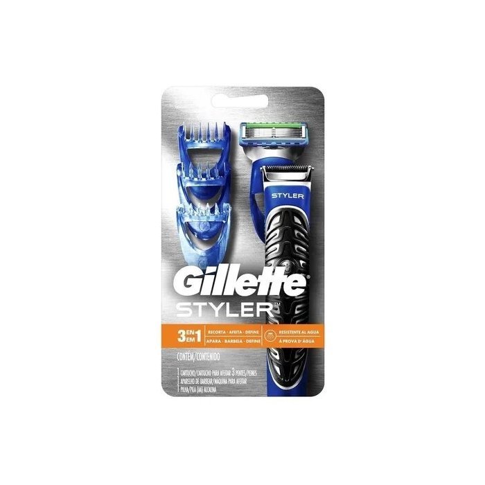 GILLETTE STYLER™ MULTIFUNCIONAL: APARADOR, BARBEADOR E APARELHO DE ACABAMENTOO Gillette STYLER multifuncional apara de maneira uniforme, proporciona um barbear rente e um acabamento com precisão. O STYLER conta com tudo do que você precisa para qualquer estilo de barba:O Gillette STYLER multifuncional combina as lâminas do Fusion ProGlide com um aparador desenvolvido pela Braun, para aparar de maneira uniforme, com um barbear rente e um acabamento preciso. Essa ferramenta multifuncional é à prova d’água e pode ser usada com segurança no chuveiro, além de funcionar com todos os refis de lâminas do Gillette Fusion, para que você possa manter seu estilo de barbear predileto com uma única ferramenta.TECNOLOGIA DESENVOLVIDA PELA BRAUN COM TRÊS PENTES INTERCAMBIÁVEISPara um aparo uniforme e uma máxima mobilidade, o Gillette STYLER multifuncional foi desenvolvido com a tecnologia da Braun. Ele também acompanha três pentes intercambiáveis, cada um com um comprimento diferente, para que você possa experimentar vários estilos de barba e bigode.REALMENTE MULTIFUNCIONALO Gillette Fusion STYLER multifuncional é adaptável a todos os refis de lâminas do Gillette Fusion, para que você possa desfrutar de um barbear personalizado.APARADOR PRECISOVire a lâmina do aparelho para usar o aparador de precisão. Ele ajuda a barbear lugares difíceis e a criar linhas definidas e precisas.DESIGN À PROVA D’ÁGUAO Gillette STYLER multifuncional é à prova d’água e totalmente seguro para ser usado em ambientes úmidos. Assim, você poderá utilizá-lo dentro ou fora do chuveiro.O aparelho funciona com pilhas alcalinas.