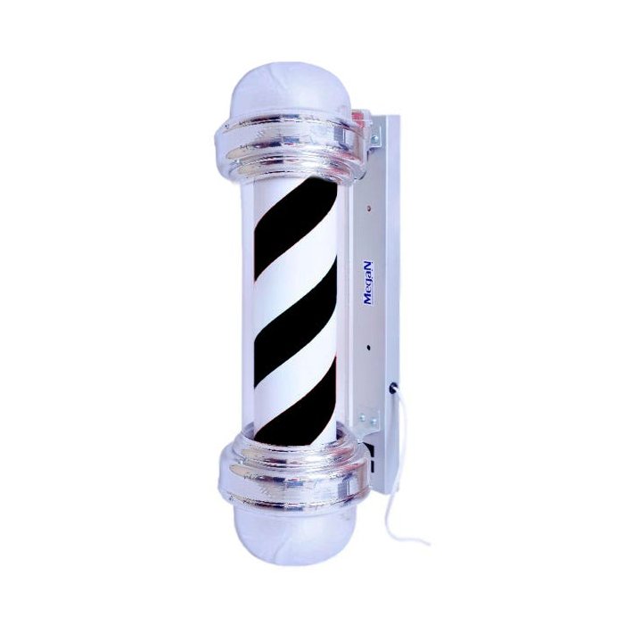O Barber Pole é um acessório que simboliza, traz destaque e dá um toque de estilo para a sua barbearia. O Barber Pole Preto/Branco 65cm sem Globo Megan é fabricado em alumínio e acrílico que oferecem resistência ao sol e a chuva além de poder ficar ligado 24 horas.